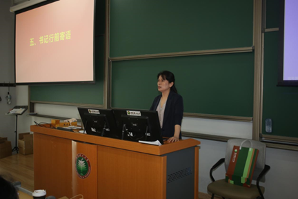 王悦璇介绍毕业生党员档案管理及党组织关系转接相关工作;张舰月和莫小丽为毕业生党员佩戴党徽,勉励大家牢记党徽在身,责任在肩,为党和人民事业贡献力量;张雷带领毕业生党员重温入党誓词,引导毕业生党员深刻领悟誓词背后所蕴含的初心与使命;张舰月为毕业生党员代表发放毕业纪念品。每一份纪念品都承载着学院对毕业生们深深的眷恋与美好的期许。